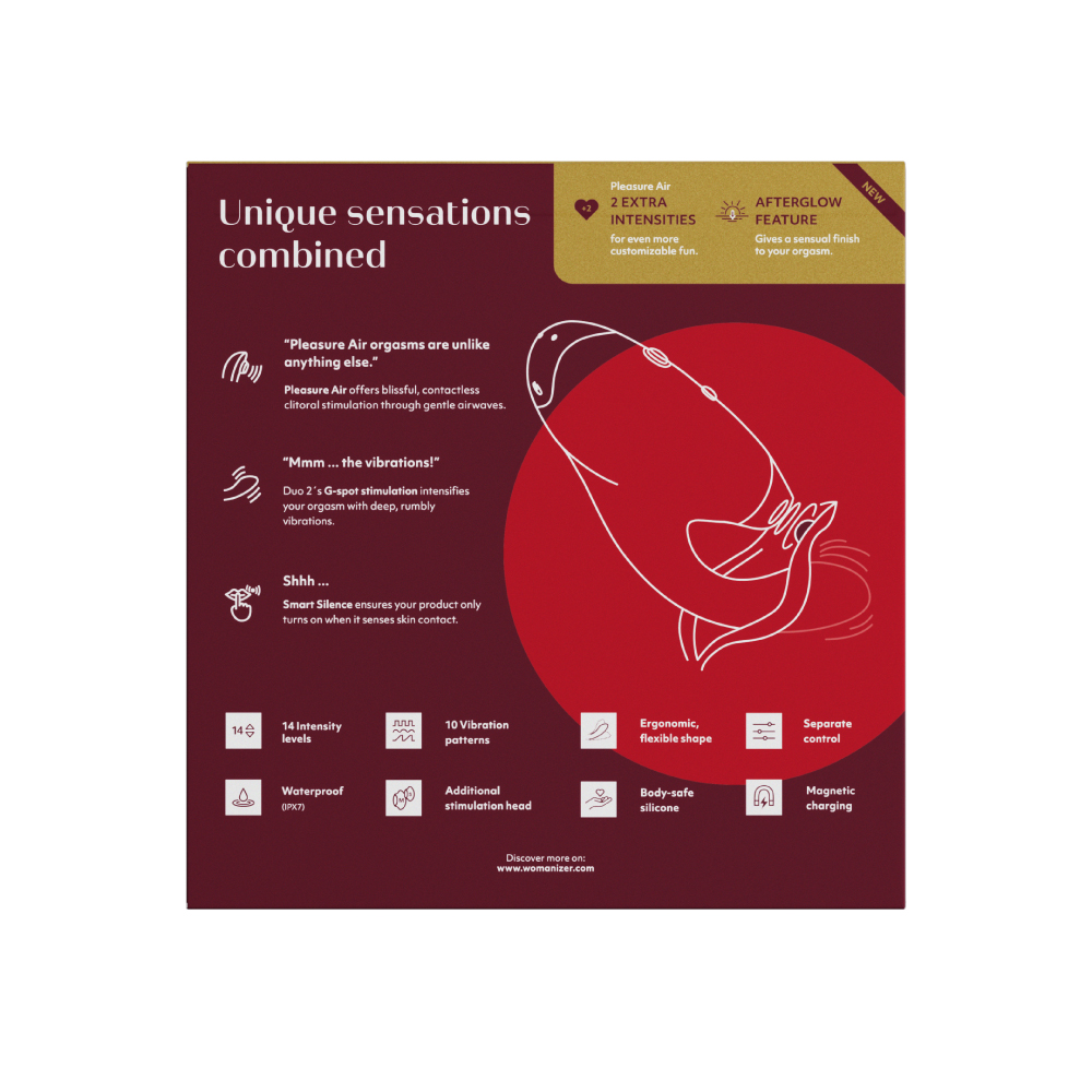 <吸引・震動/USB充電式>挿入と吸引が同時にできる大人気のウーマナイザーDUOがDUO2に進化!吸引振動の強弱段階は12段階から14段階へパワーアップ。