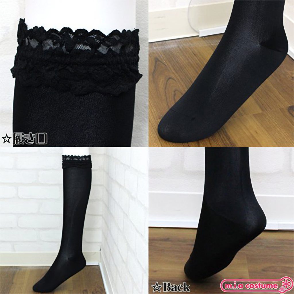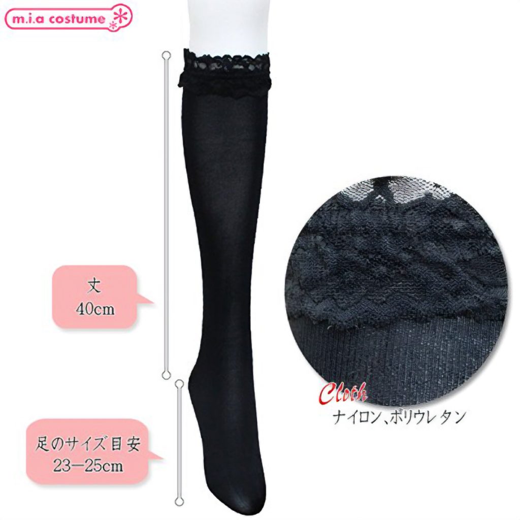 レース付きで可愛いハイソックスです♪丈は40cmで足のサイズの目安は23~25cm。 レース付きのハイソックスでシンプルな無地だから使い勝手は抜群!普段着やメイド服に合わせてもとってもキュート♪ ※水洗い可、塩素系漂白剤による漂白不可、色落ちの可能性があります。