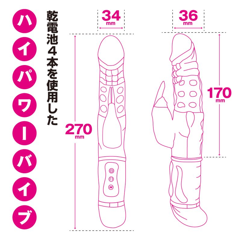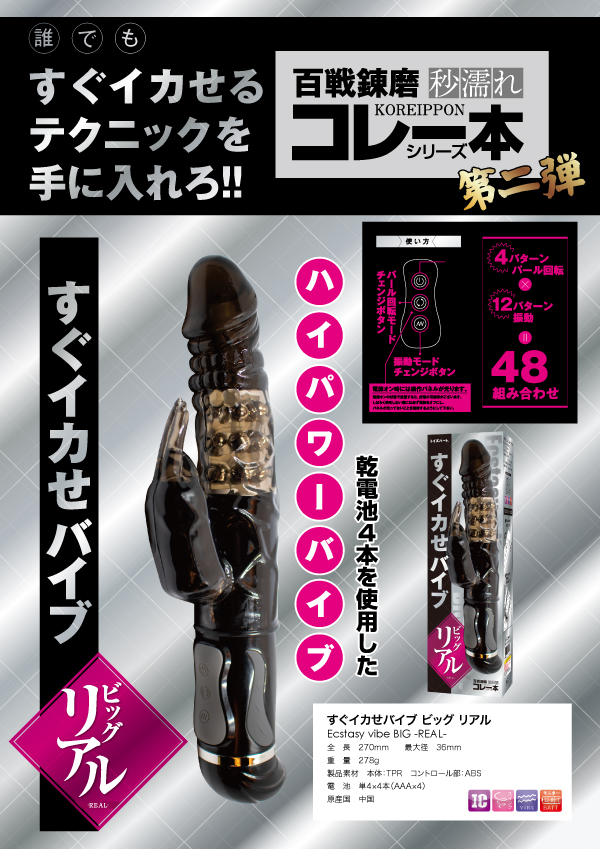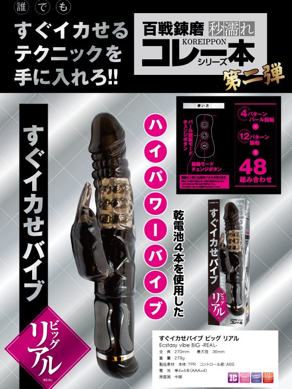 誰でもスグにイカせられるスゴ技テクがコレ一本で手に入る!48種類もの豊富な振動アクションを搭載した膣奥まで届きやすい全長27.0cmのバイブ。多彩な48の組合せパターンとパワーアップした百戦錬磨シリーズ第弾!